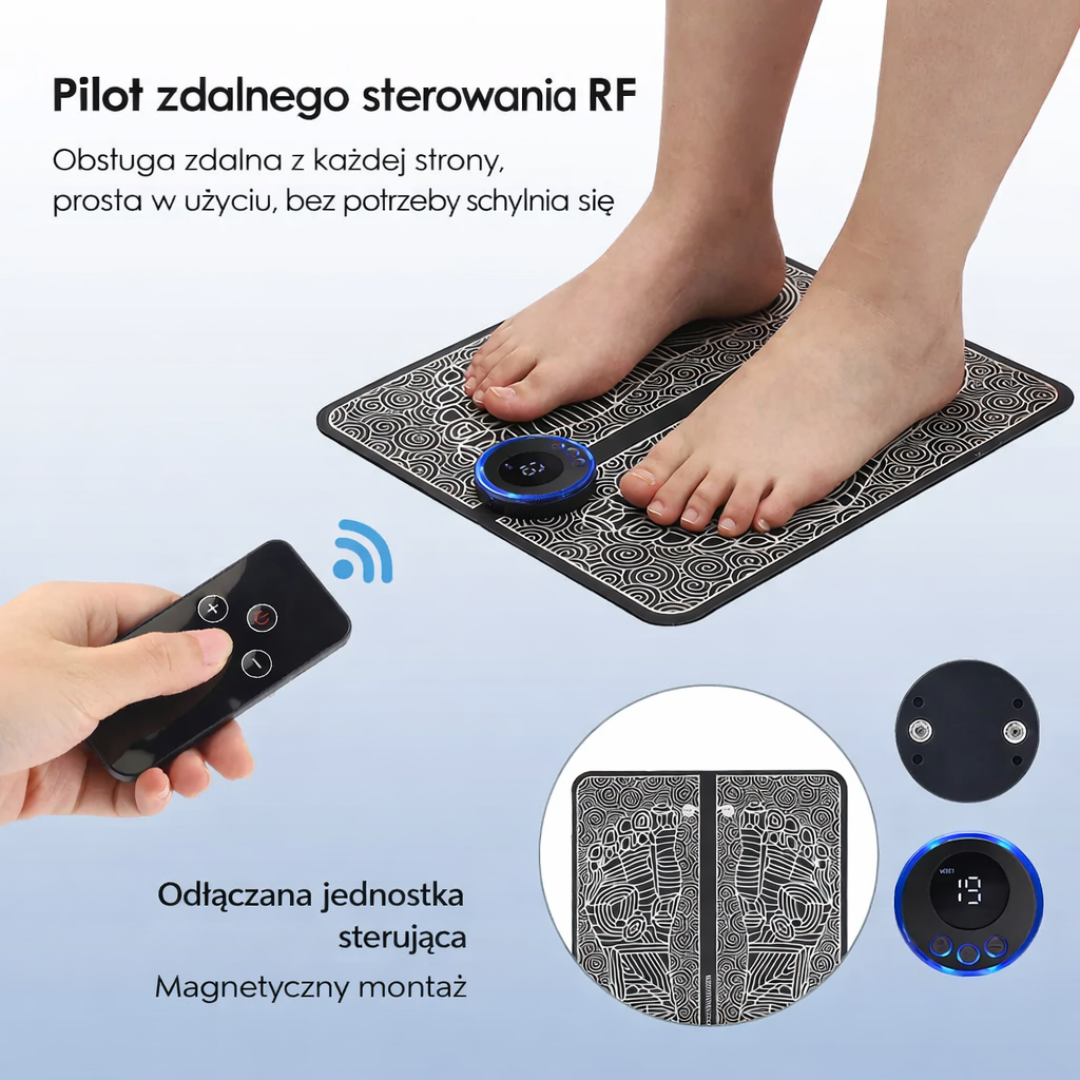 Mata wykorzystuje bezpieczne impulsy o niskiej częstotliwości, które naśladują naturalny ruch mięśni. Pobudzają one nerwy i mięśnie stóp, zapewniając głęboki, terapeutyczny masaż bez żadnego wysiłku.